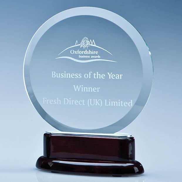 This elegant award perfectly combines 3 different materials, the 14cm crystal circle is bonded onto a brushed aluminium section and mounted onto a rosewood piano finish wood base. The glass circle has a large engraving area that can be personalised with any crest, logo or wording to create an award that is sure to take pride of place when put on display at home or at work.