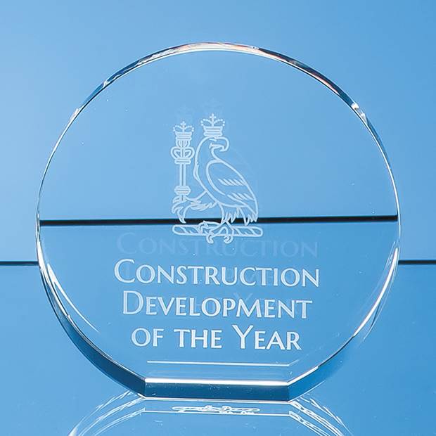 Crafted in pure optical crystal this stunning contemporary round free-standing award comes in three sizes 10cm shown 13cm and 15.5cm It is ideal as a standalone presentation recognition or award but perfect also for 1st 2nd and 3rd place achievement whether sporting academic or corporate. With a generous area to engrave a crest company logo or message it comes in its own foam lined presentation box.