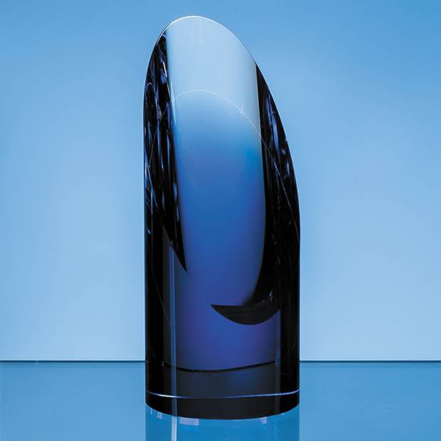 Crafted in flawless clear and sapphire optical crystal this cylindrical award has a sliced front effect leaving a generous space for engraving a crest company logo or message. Available in three sizes 15cm 18.5cm shown and 23cm making it ideal to use as a standalone presentation recognition or award but also for 1st 2nd and 3rd place achievement whether sporting academic or corporate. Plus it comes in its own foam lined presentation box.