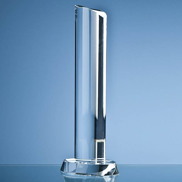 The 30.5cm x 7cm x 4cm oval column is hand crafted out of perfectly clear optical crystal and mounted onto a bevel edged oval base. They are available in 3 sizes and can be personalised with any crest, logo or wording to create an award that is sure to take pride of place when put on display at home or at work. They are ideal recognition, achievement or incentive gifts and are supplied in a black foam lined presentation box.