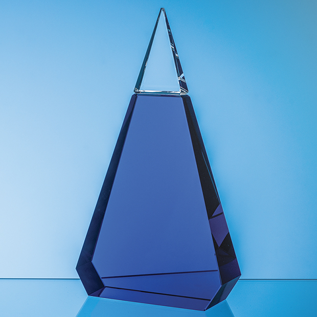 25.5cm Cobalt Blue & Clear Optical Crystal Prism Award