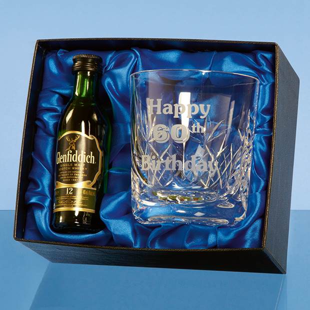 The Blenheim Lead Crystal whisky tumbler is a traditional design with diamond cut detail. It has an area that can be engraved with any wording, logo or crest. The glass and malt whisky miniature come in a satin lined presentation box making it an ideal personal gift that will be treasured and enjoyed by the recipient.